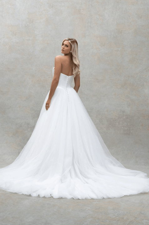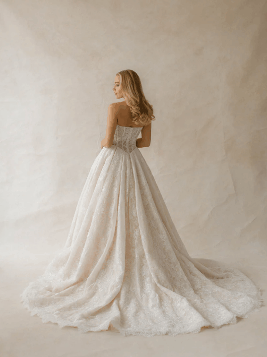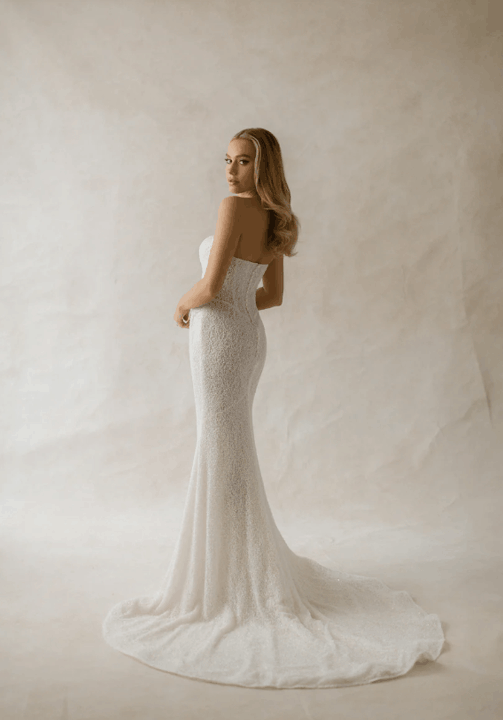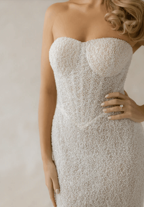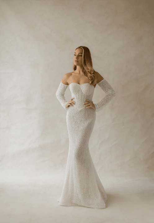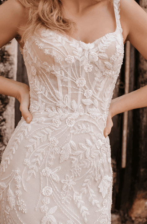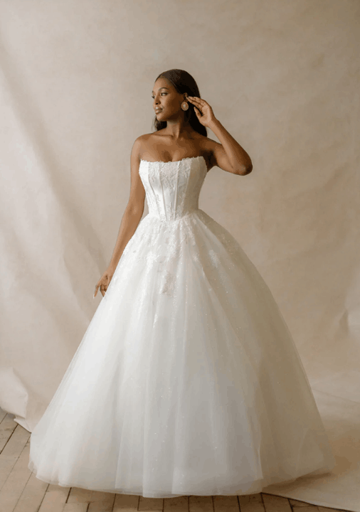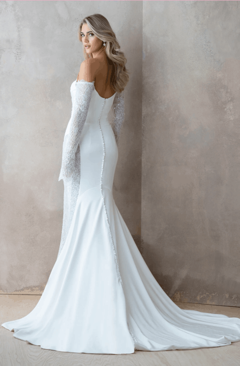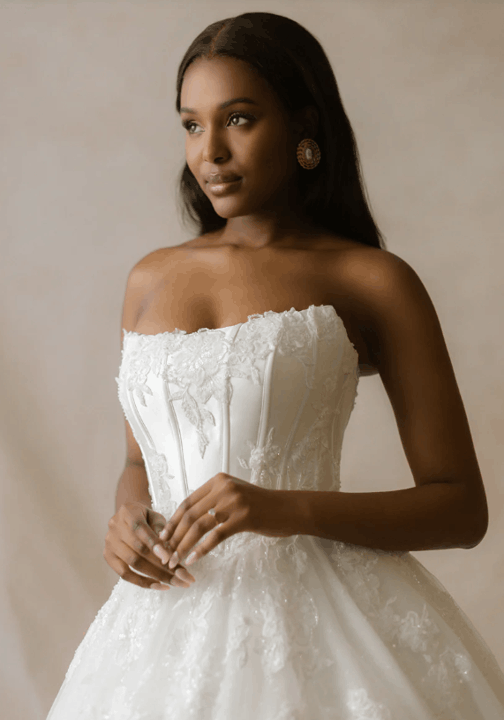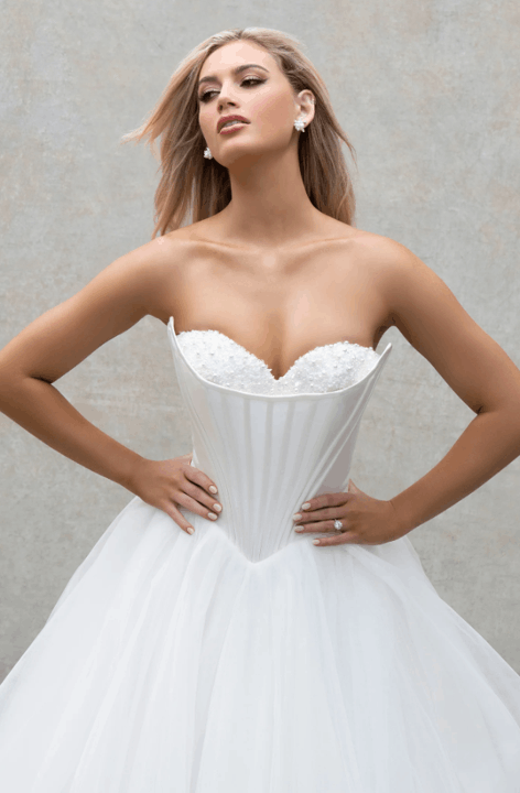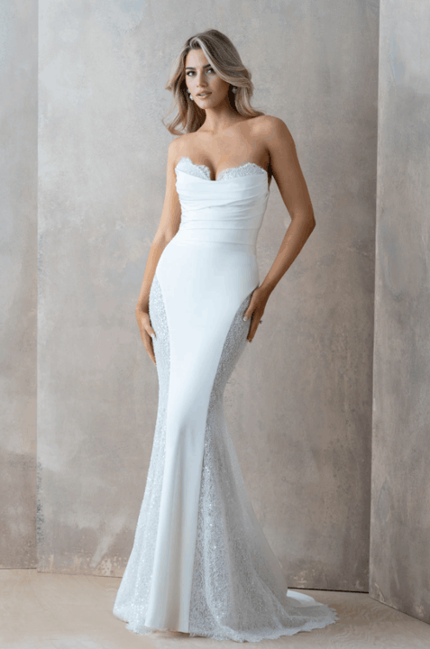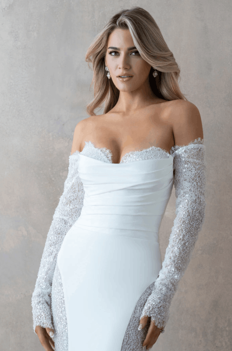 Effortlessly blending European sophistication with modern bridal artistry, the Abella collection by Allure Bridals captures the essence of high-fashion romance. Defined by sculptural silhouettes, sweeping trains, and luminous textures, each gown is a study in refined opulence. Intricate lace, couture draping, and delicate embellishments speak to the collection’s elevated craftsmanship—perfect for the bride seeking timeless elegance with a bold, contemporary edge.